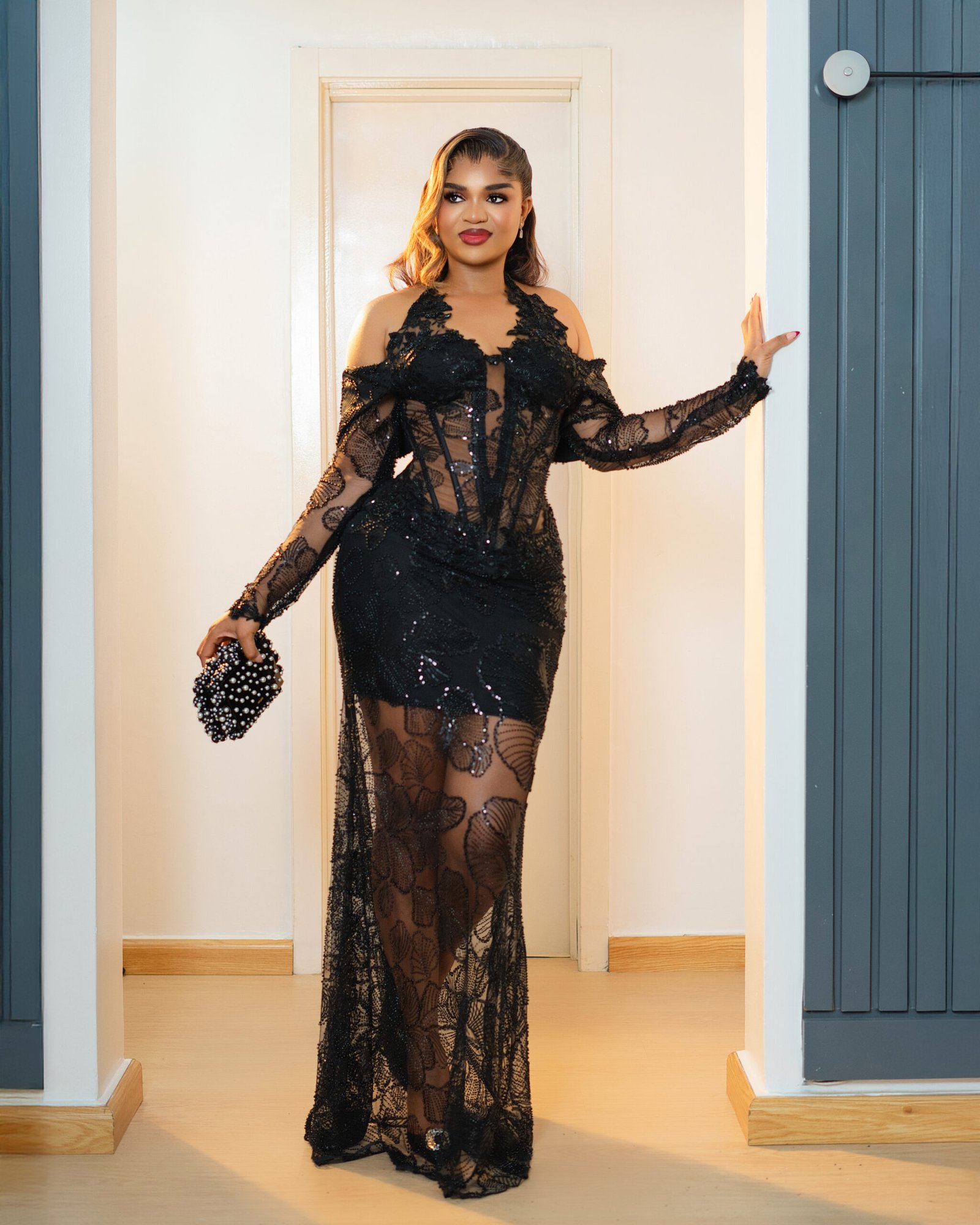 \Black fully beaded silhouette dress. Perfect for parties and gala events.